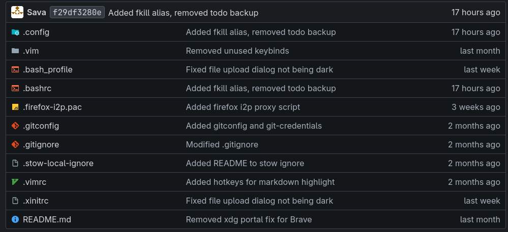 A screenshot of the files in my git dotfiles repository