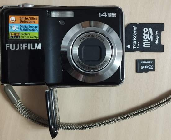 Next up: a Fujifilm AV200, complete with a 128MB SD card still inside 💾. One hundred and twenty eight megabytes. That's maybe a handful of photos at full resolution. I almost don't want to check what's on it - it feels like opening a time capsule from a very specific afternoon in 2010.